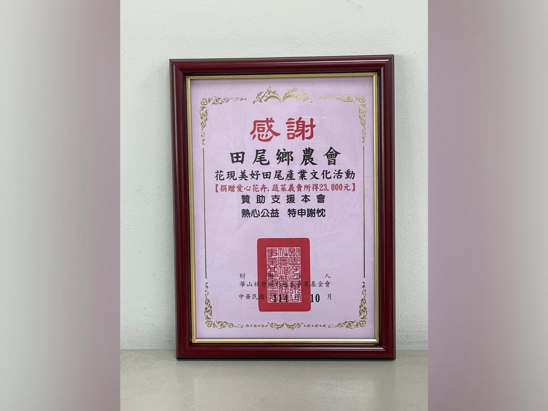 本次義賣所得共計新臺幣貳萬參仟元整,已全數捐贈予華山基金會田尾天使站,為田尾鄉獨居長者盡一份心力,讓花卉蔬果不僅新鮮,也暖人心田