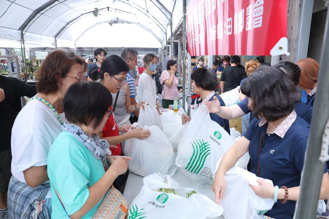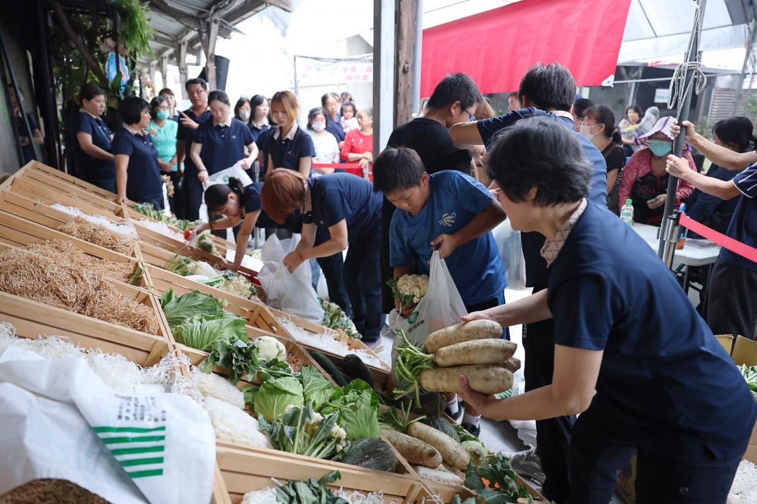 本會吳政憲總幹事秉持愛物惜物的精神,特於會後將展出的花卉與蔬果進行義賣,感謝鄉親與貴賓熱心響應,讓愛心匯聚成力量